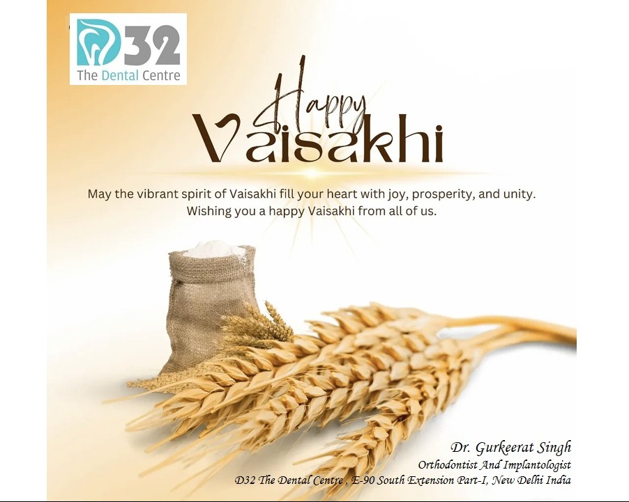 #DrGurkeeratSingh#D32DentalCentre#SouthExtension#BestOrthodontist#HappyBaisakhi#BaisakhiWishes#FestiveSmiles#Baisakhi2026#DentalCare#OrthodontistIndia