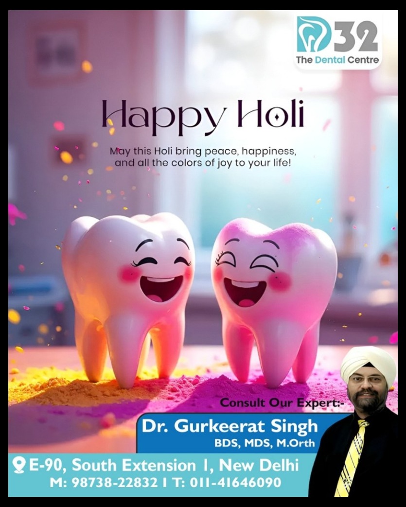 Happy Holi from D-32 The Dental Centre. Wishing you a safe, joyful and colorful Holi.